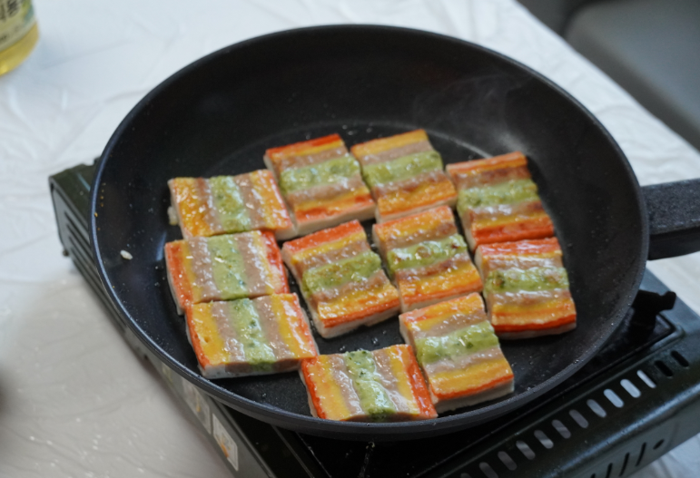 이달 주제는 오색꼬치전 만들기였으며, 환우분들이 명절 분위기를 느끼실 수 있도록 특별히 준비하였다. 프로그램 시작과 동시에 팬에 기름을 둘러 전을 부치자, 맛있는 기름 냄새가 4병동 로비에서 각 병실로 퍼지기 시작했다. 환우들이 모여 문전성시를 이루었고, 4병동 윤희정 병동장님께서 팔을 걷어부치며 오색꼬치전을 함께 부쳐주셨다.