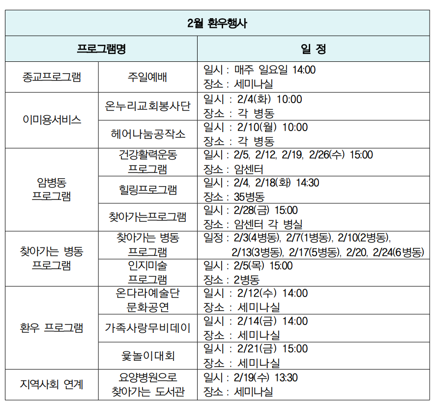것 같아 프로그램을 제공해 주신 김제시립도서관 관계자에게 감사를 표한다. 앞으로6월까지 ‘요양병원으로 찾아가는 도서관’ 프로그램이 환우분들에게 제공될 예정이며, 매우 기대되는 일이다.