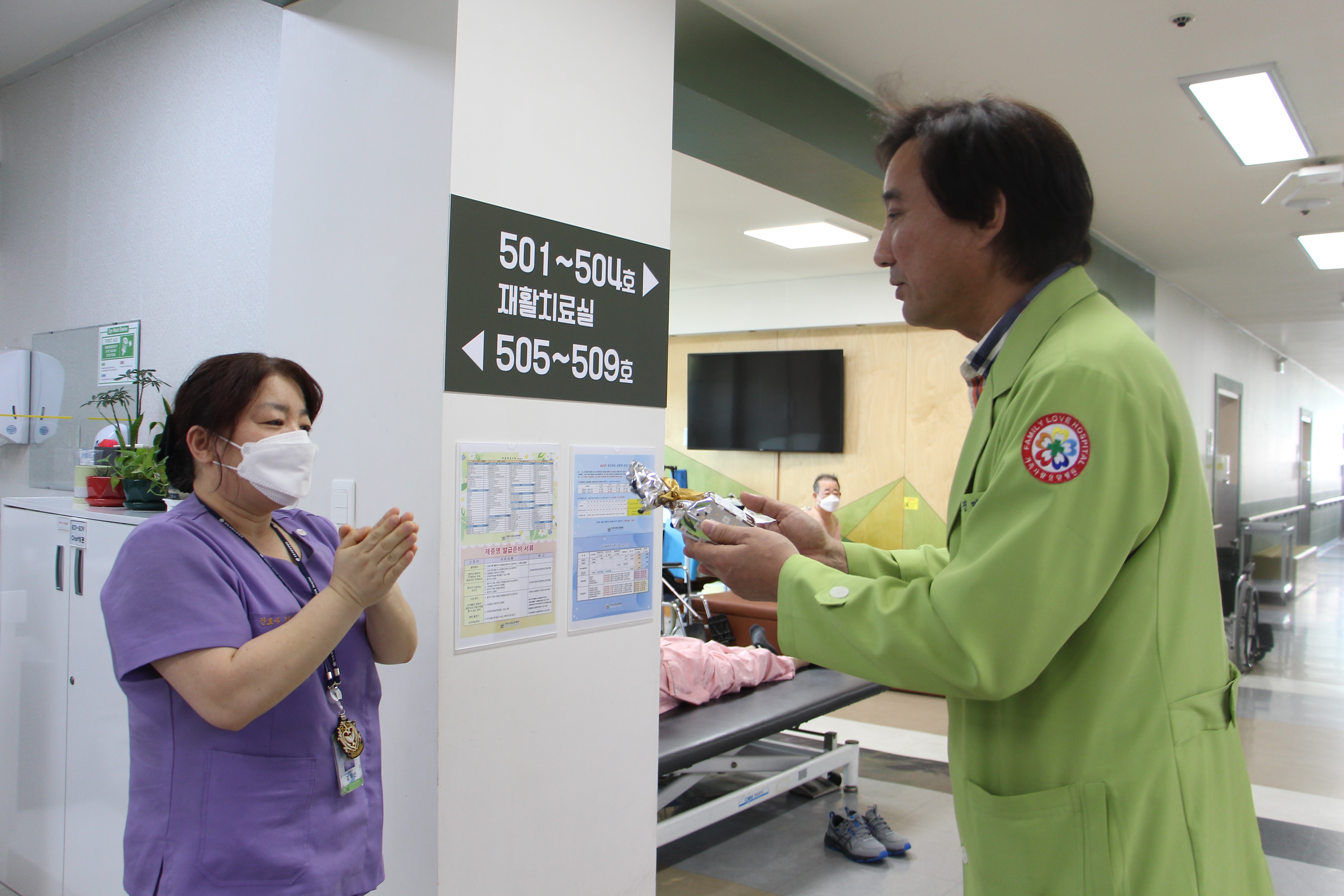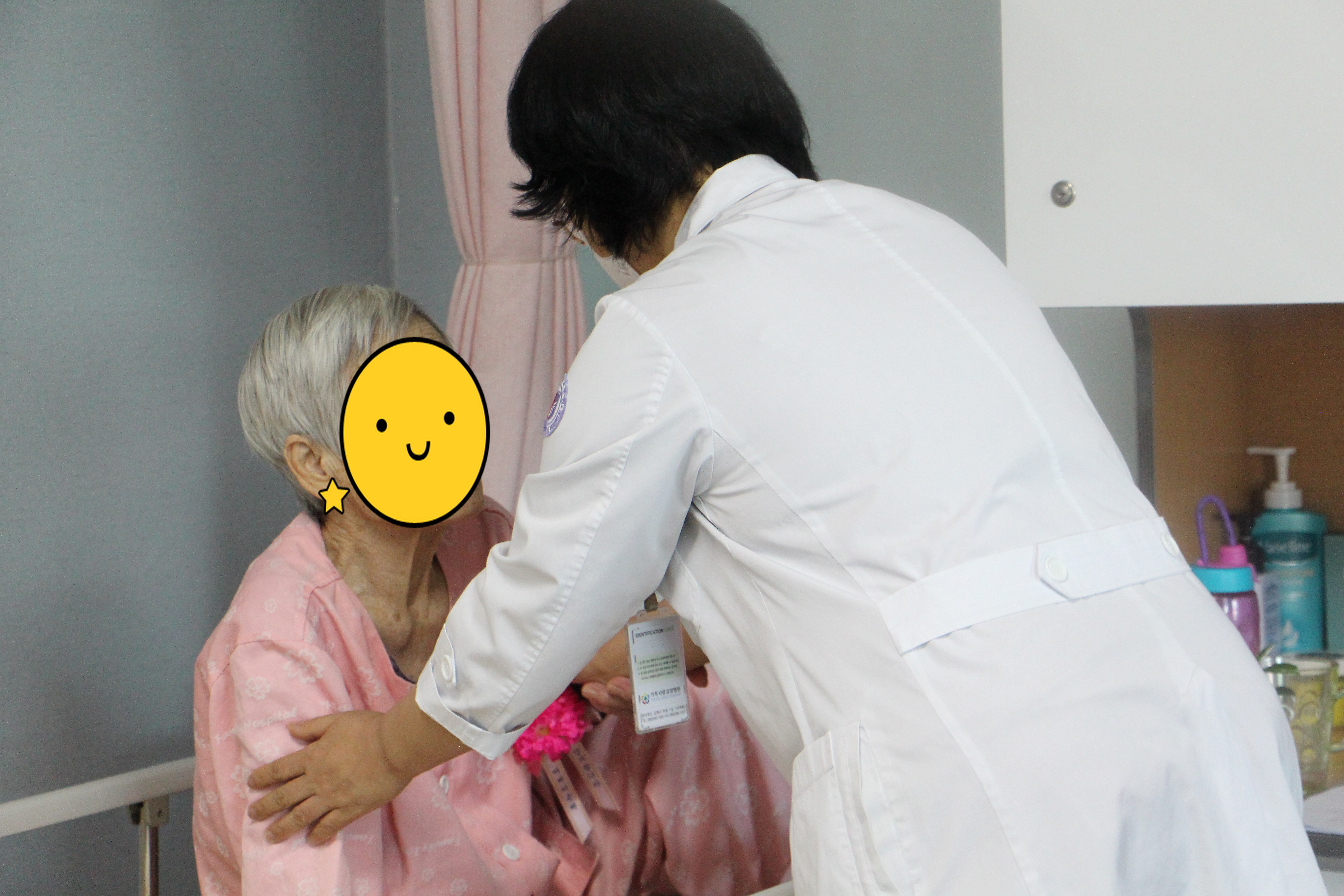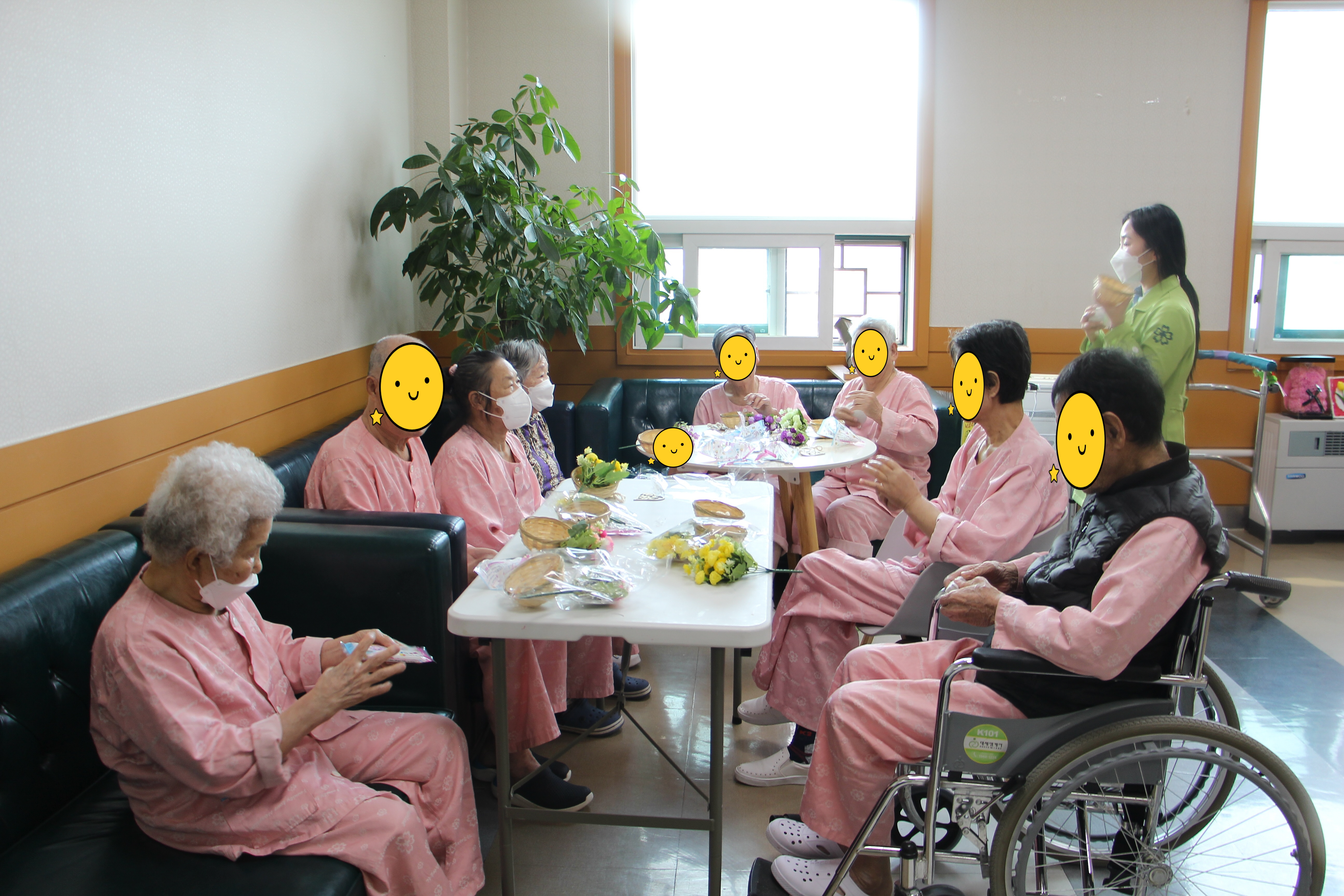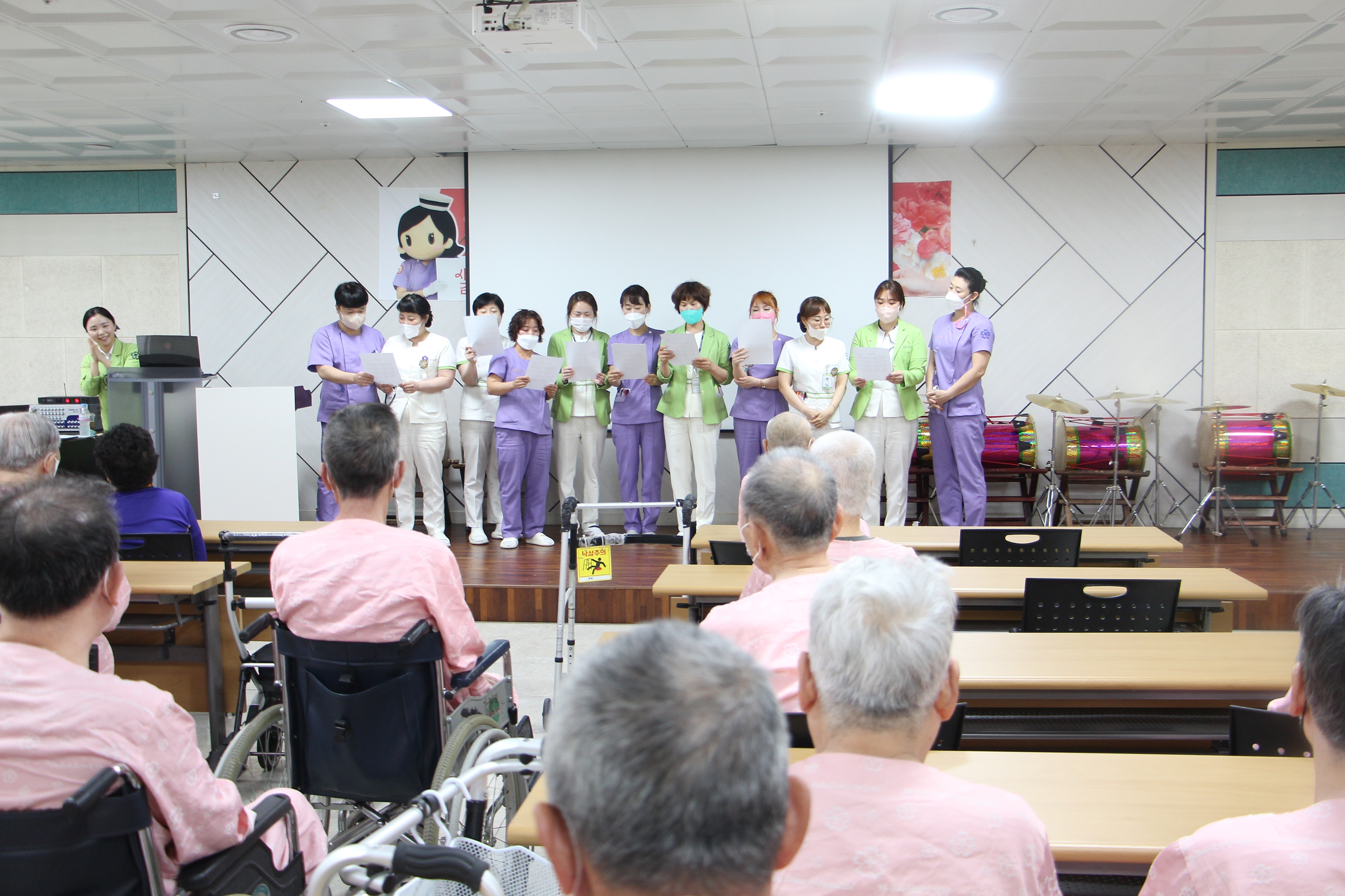 병동 주치의 선생님들이 카네이션을 달아드리니 부모님께서 웃음과 포옹으로 보답해주셨다. 또한 4월 28일(금) 곱게 한복을 차려입고 장수사진을 찍으신 분들에게 멋진 액자에 사진을 예쁘게 넣어 장수사진을 전달하였다.