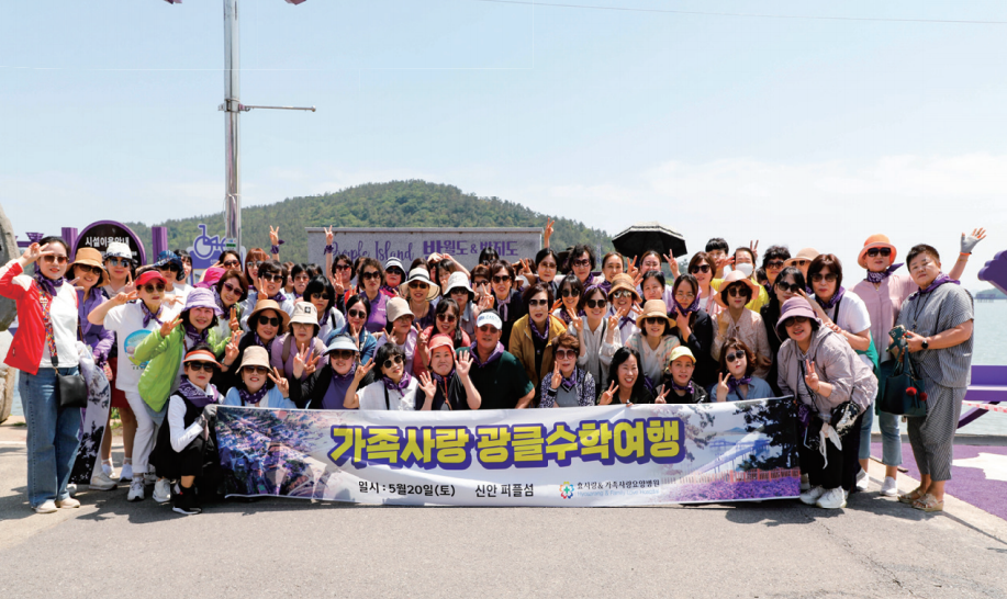 가족사랑 & 효사랑 80명의 직원들이 이른 아침에 출발해 3시간가량 걸려 첫 번째 마주한 1004대교의 웅장함과 아름다움에 놀라 입이 다물어지지 않았던 추억을 뒤로 이날의 주인공인 퍼플섬에 입성하였다.