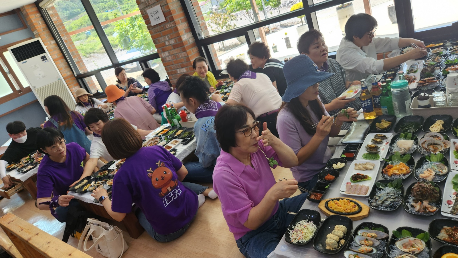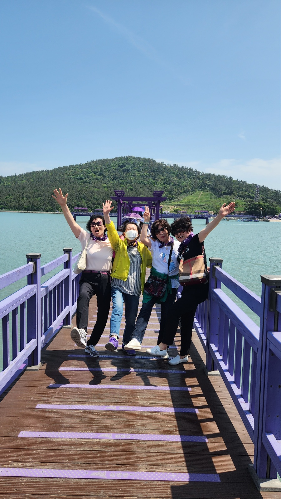 3시간을 달려와서인지 배고픔을 남도에서만 볼 수 있는 생선회 정식 한 상은 전주에서는 볼 수 없는 너무도 환상적인 신선함이였다. 식사 후 본격적으로 버스에서 내리자마자 단체사진을 남긴 후 보라색의 해상 보행교를 따라 들어간 퍼플섬은 왜 이곳이 퍼플섬으로 불리는지 알 수 있었다.