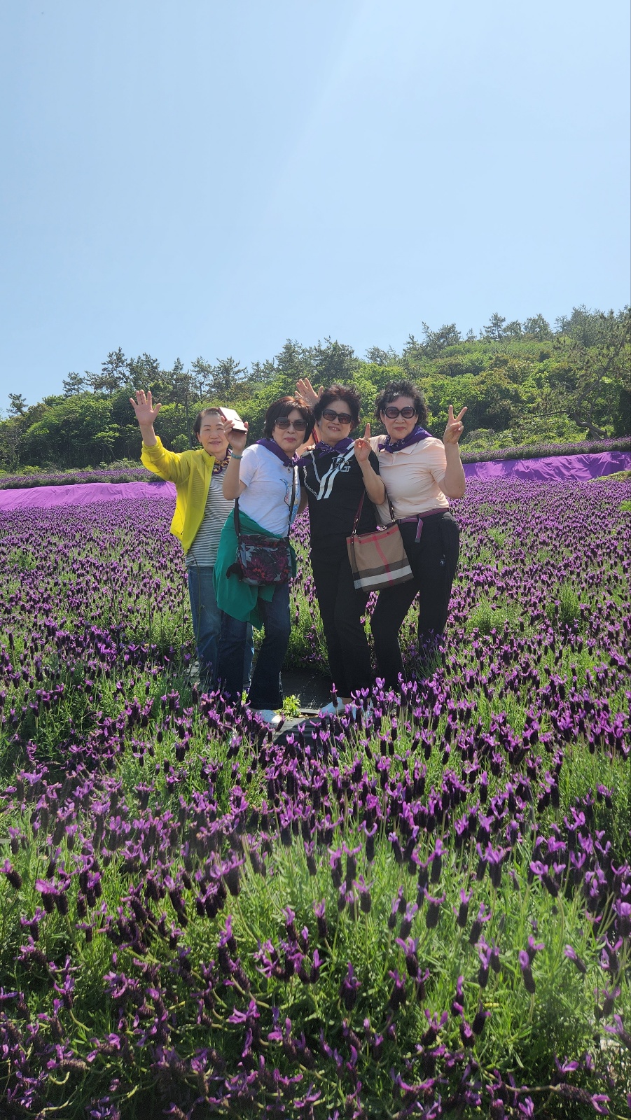 보행교를 건너 산길로 20여분을 걸어 드디어 이때만 볼 수 있는 전국 최대 규모의 라벤더 정원은 하늘색 하늘과 바다 그리고 보랏빛 물결을 만날 수 있는 유일한 곳으로 하늘과 바다와 섬 그리고 사람이 하나가 되듯 몽환의 세계 속으로 빠져들게 했다.