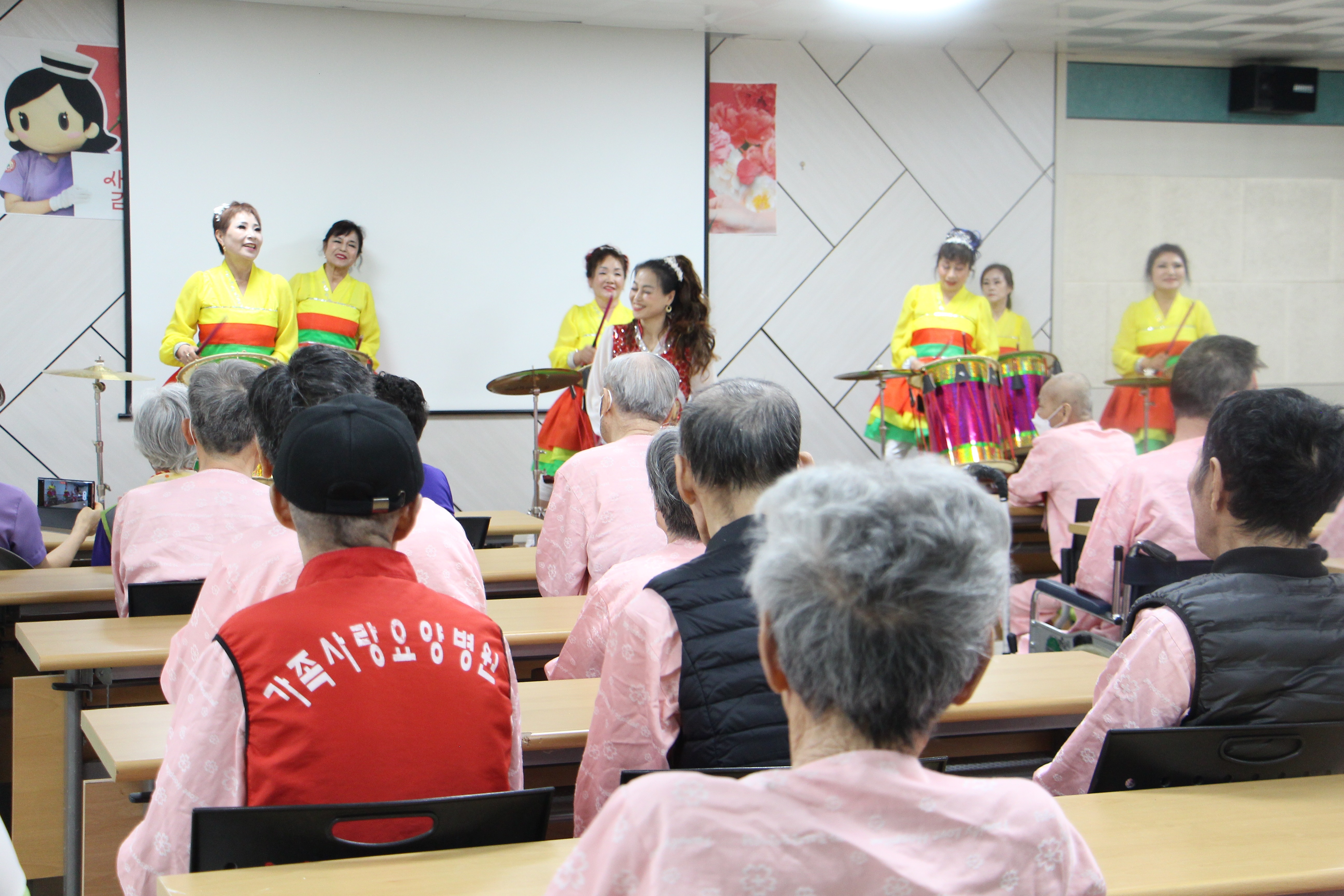 직원들이 부모님을 사랑하는 마음이 온전히 전해지길 바라본다. 평생을 가족을 위해 최선을 다해 삶을 지켜오신 우리 부모님. 오늘만큼은 더욱 웃고 즐기고 행복한 날이 되길 바라는 마음으로 부모님이 즐기실 수 있는 효도공연도 준비하였다. 흥에는 노래와 춤이 빠질 수 없는데, 이번 효도 공연은 부모님이 좋아하실 만한 음악으로 노래와 장구공연이 진행되었다. 공연하는 동안 우리 부모님과 직원들 모두 하나가 되어 노래를 따라부르고 춤도 추면서 즐거운 시간을 가졌다.