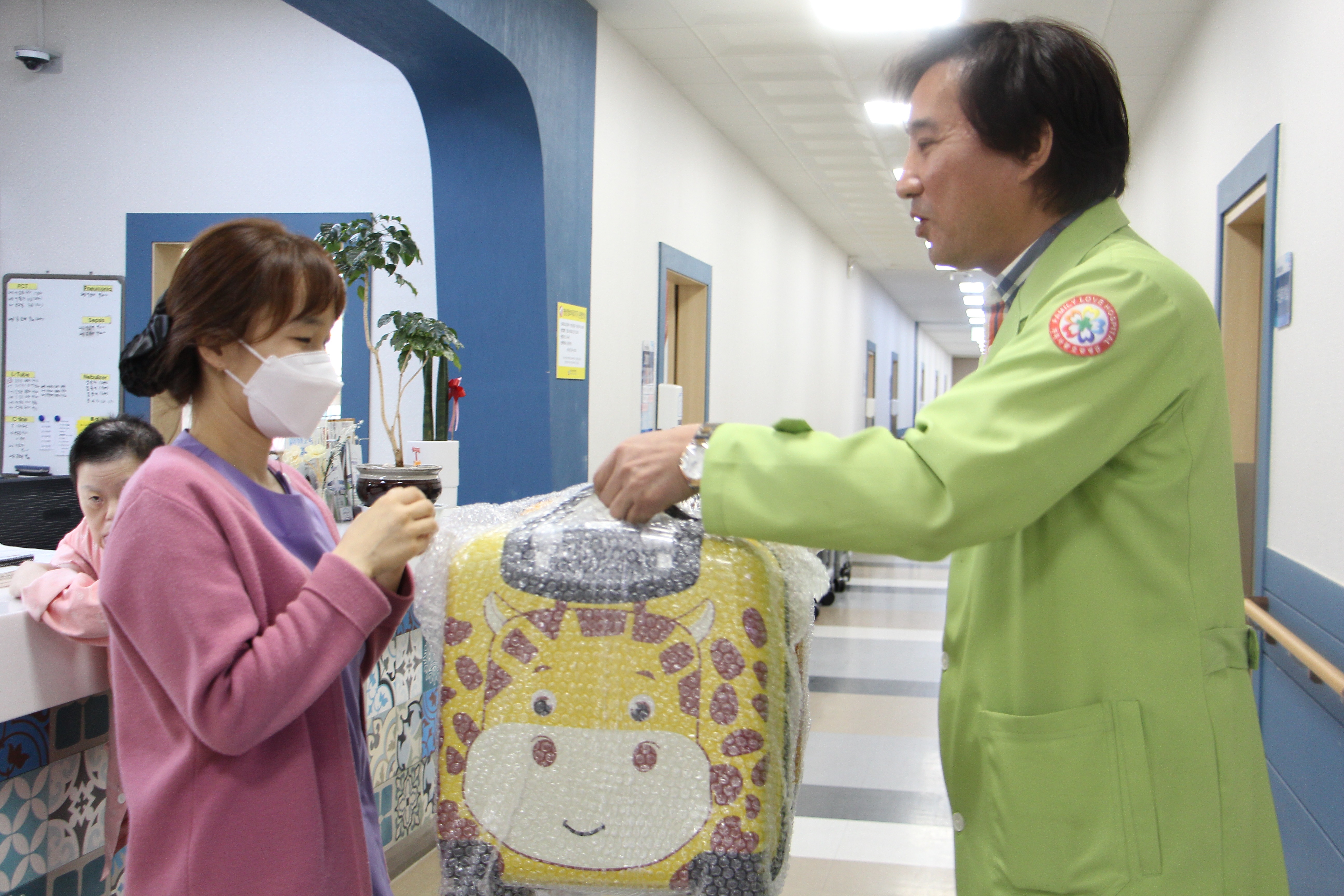 가족사랑에도 어김없이 어린이날이 찾아와 행복한 어린이날을 앞두고 지난 2일(화)에 가족사랑 박진만 이사장님이 육아와 일을 병행하는 직원을 한 분 한 분 찾아가 직원 자녀를 위해 어린이날 선물을 전달하였다.