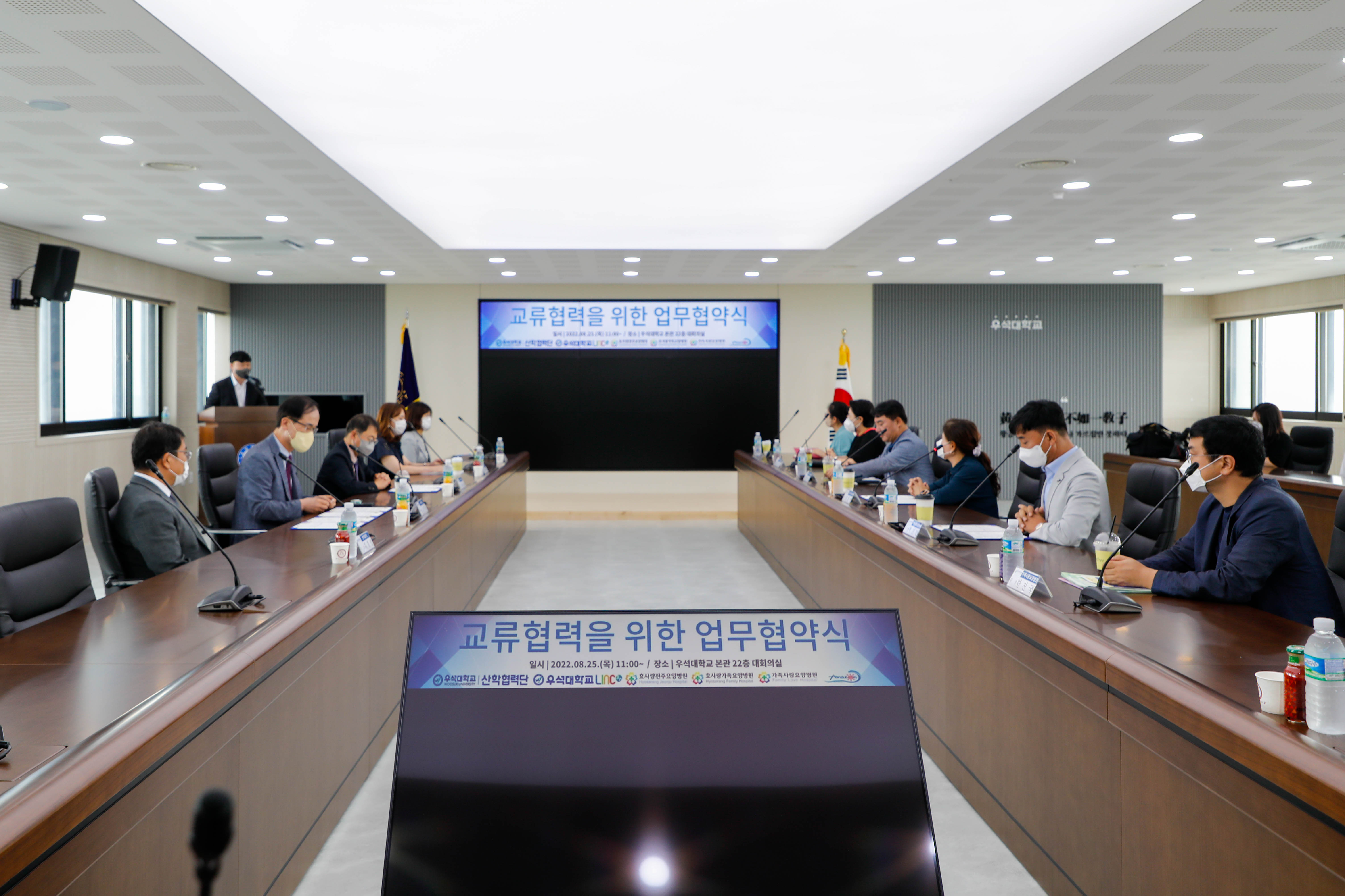 8월 25일 목요일 11시 우석대학교 본관 22층 대회의실에서 열린 업무협약 체결식에는 효사랑가족 김정연 병원장, 최금희 사회사업실장, 효사랑전주병원 박진상 병원장, 김은영 사회사업실장과 가족사랑병원 박진만 이사장, 한진국 효도리사회사업단장과 우석대학교 산학협력단 오석홍 부총장, 정희석 부단장, 김경성 실장과 우석대학교LINC3.0사업단 이종석 단장, 채혜원 사무국장, 센터장 등 총 12명이 참석했다.