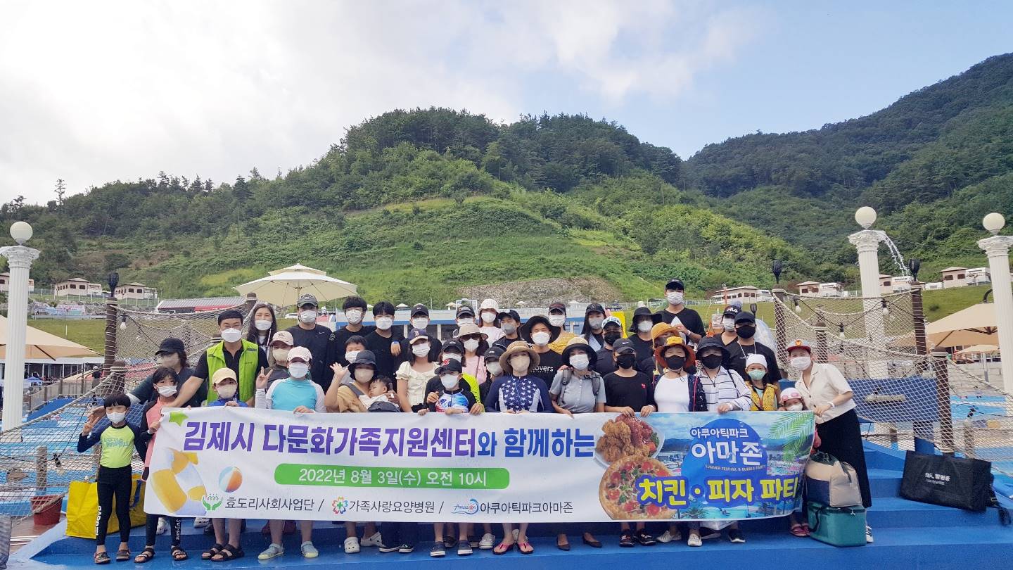 지역사회 내 이웃에게 사랑과 봉사를 실천하기 위해 21년 7월 7일 설립된 효도리사회사업단이 어느덧 1년을 맞이했다. 1주년을 맞이하여 올해 7~8월 두 달간 효도리사회사업단의 많은 사업 중 하나인 문화 나눔 사업인 아쿠아틱파크 아마존과 연계한 물놀이 지원 사업을 확대하여 전주와 김제지역 총 12개 기관과 연합하여 문화지원사업을 진행하였고 좋은 반응을 받아 소개하고자 한다.